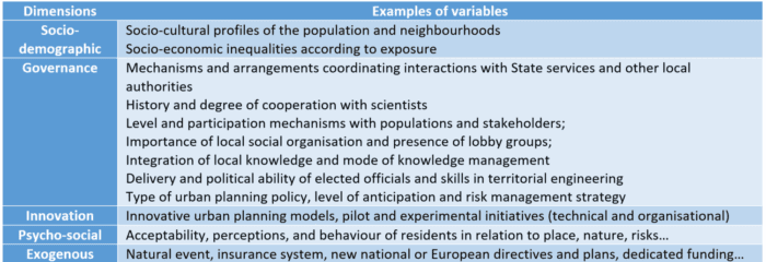 - The important role of some trigger variables (financial resources of local authorities, attractiveness, institutional risk management strategy, natural triggering event);